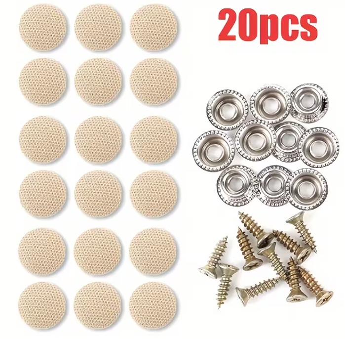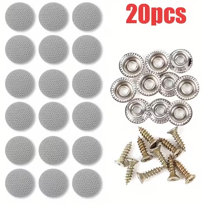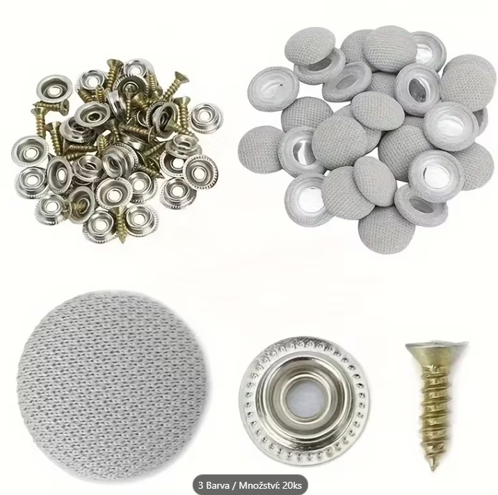 Klip pro upevnění látky stropu auta. Včetně šroubovacích krytek a nýtovacích svorek, určených jako držáky a upevňovače pro interiéry automobilů.