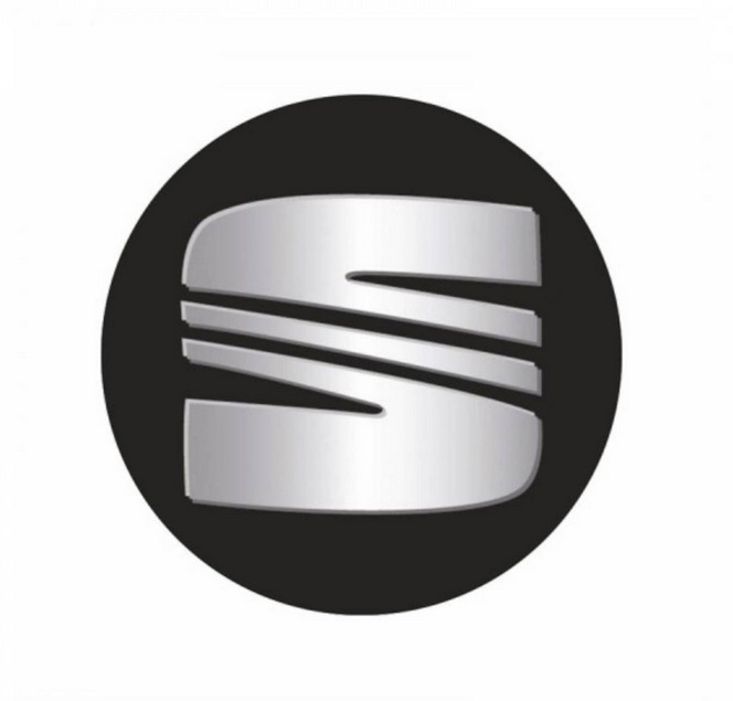 SEAT znak - emblem 56mm černý na středové krytky kol, nebo poklice