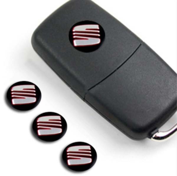 Znak SEAT do klíče. Možnost vyměnit za poškrábaný či poškozený znak. Výměna je snadná, znak je nalepovací (oboustraná páska). Cena za jeden kus.